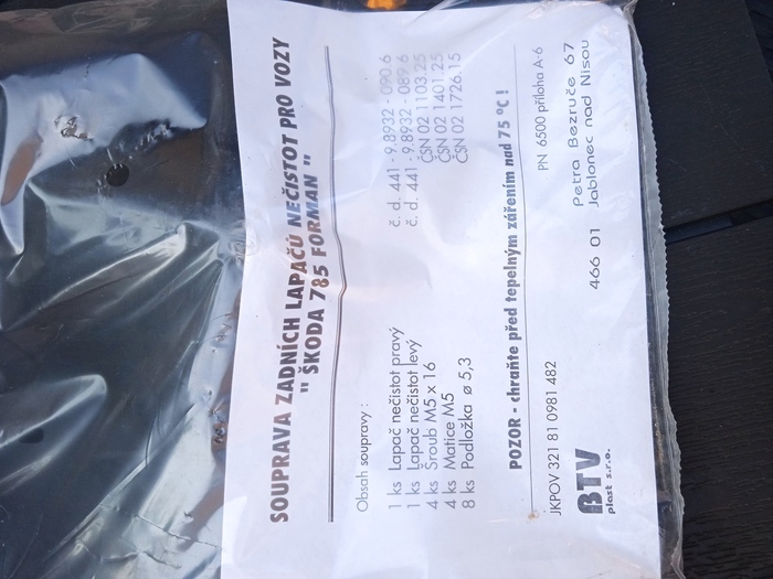 Autodíly Krbec > E-shop > ESHOP - veteráni > Škoda Favorit/Felicia > Karosérie Favorit/Felicie > Zadní zástěrky Formant orig BTV Jablonec